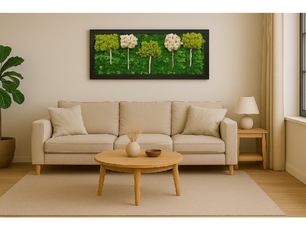 Každý mechový obraz je ručně vytvořen a přináší do vašeho interiéru přírodní eleganci a jedinečnost.