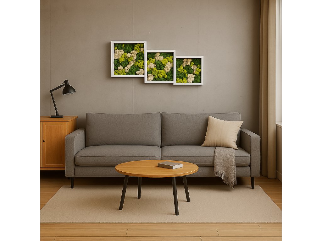 Přírodní elegance a jedinečné umělecké dílo se snoubí v našem exkluzivním mechovém obraze.