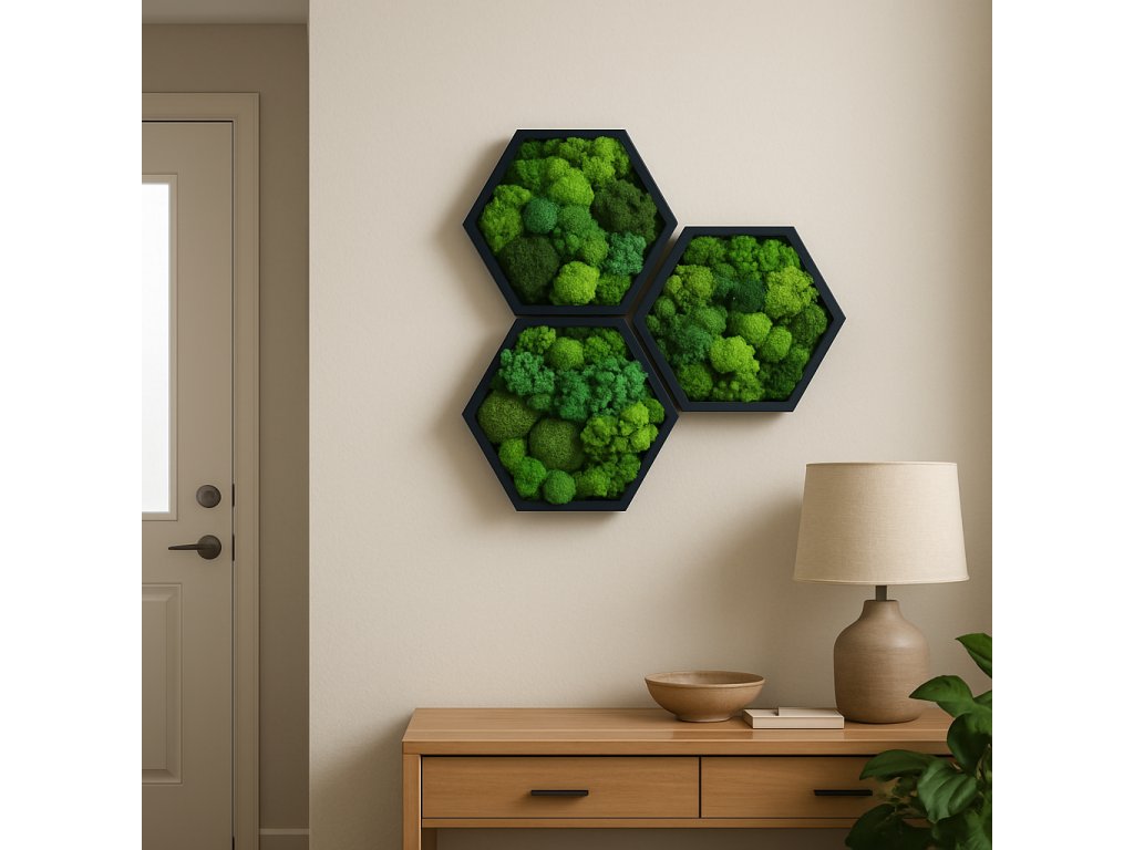 Přírodní elegance a jedinečné umělecké dílo se snoubí v našem exkluzivním mechovém obraze.