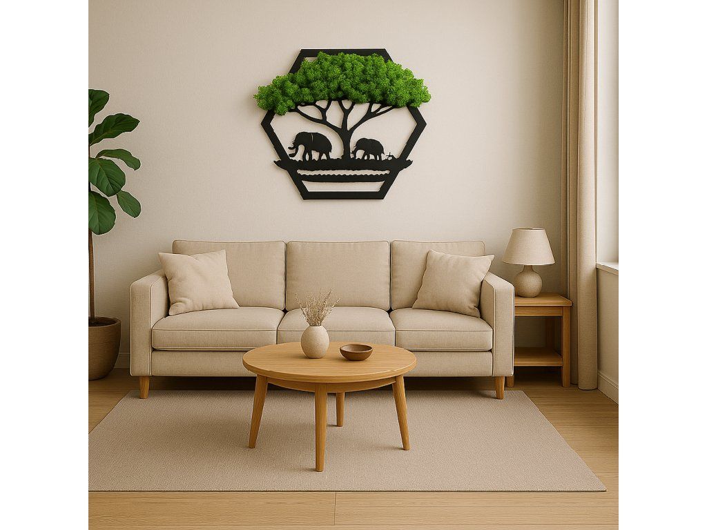 Použitý stabilizovaný mech pochází ze specializovaných farem a zachovává si svůj přirozený vzhled i měkkost bez nutnosti zalévání nebo speciální péče.
